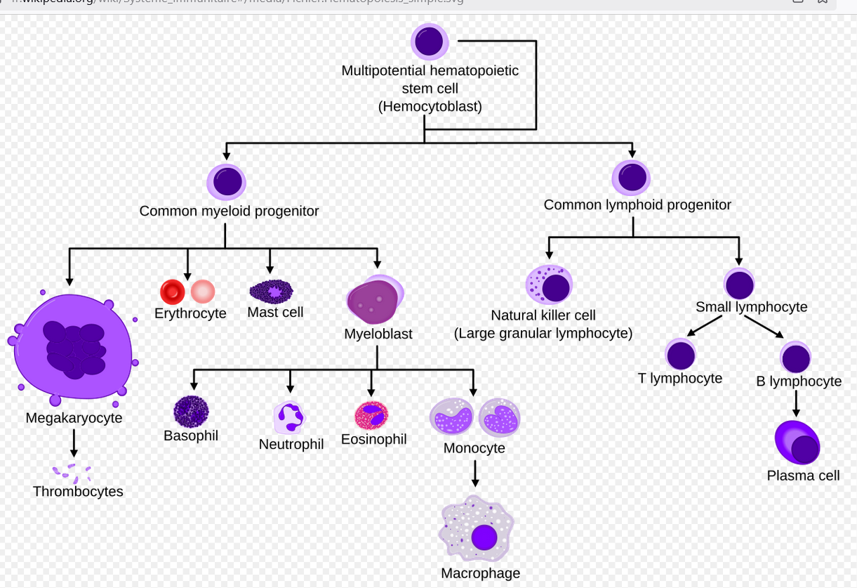 Nous nous intéresserons aux globules blancs et particulièrement aux lymphocytes (B, T, NC) qui seraient impliqués dans l'attaque auto-immune provoquant le syndrome de Guillain-Barré ou d'une de ses formes. Nous en rediscuterons plus loin.